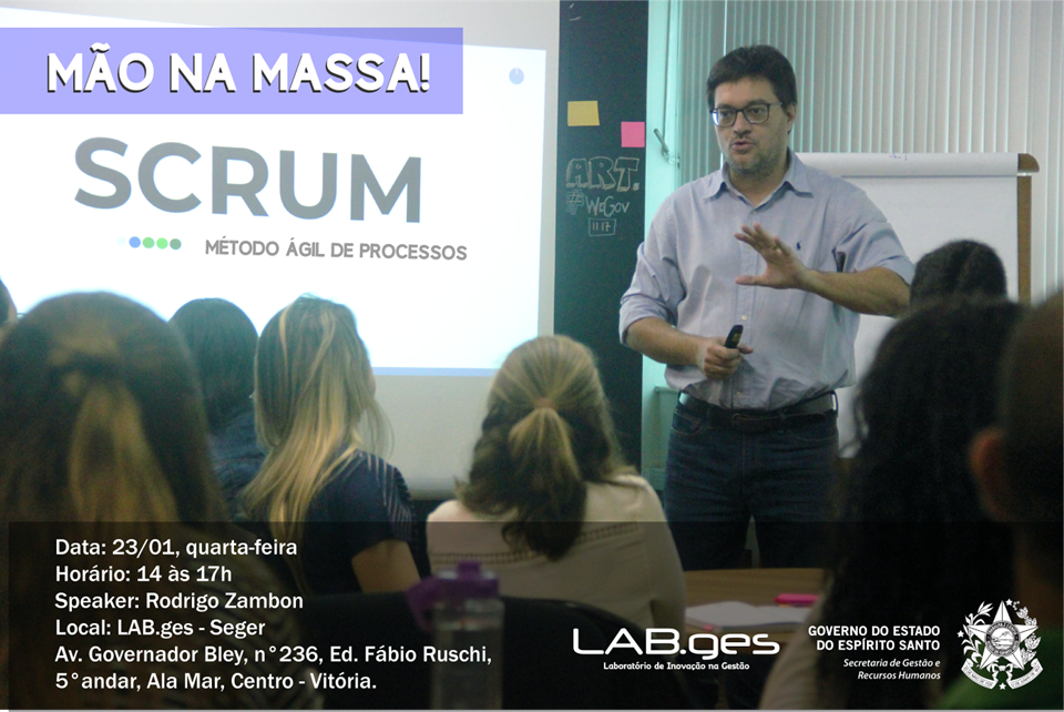 O Laboratório de Inovação na Gestão (Lab.ges) promove, no dia 23 de janeiro, o encontro “Mão na Massa - Scrum: métodos ágil de processos”, com a participação de Rodrigo Zambom. O Scrum é uma estrutura para gestão e planejamento de projetos complexos.