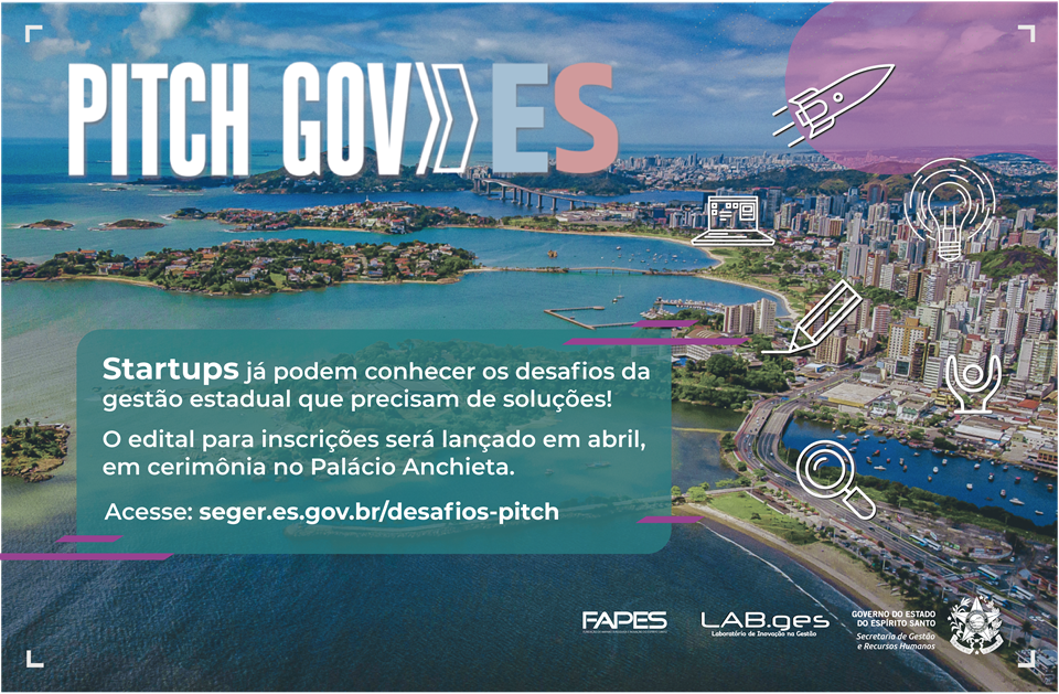 A Secretaria de Gestão e Recursos Humanos (Seger) e o Laboratório de Gestão na Inovação (LAB.ges) divulgou, nesta quarta-feira (11), os 43 desafios enfrentados pela gestão pública que estarão presentes no edital do Pitch Gov.ES. O objetivo é possibilitar que as startups interessadas no programa antecipem seus estudos e se preparem para inscrever as propostas de solução.