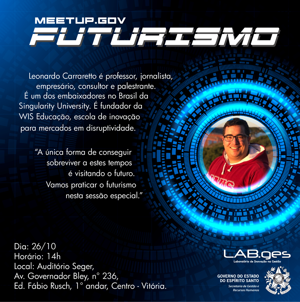 Nesta sexta-feira (26), o Laboratório de Inovação da Seger – LAB.ges – promoverá mais uma edição do MeetUp.gov. E desta vez, o encontro abordará o tema Futurismo.