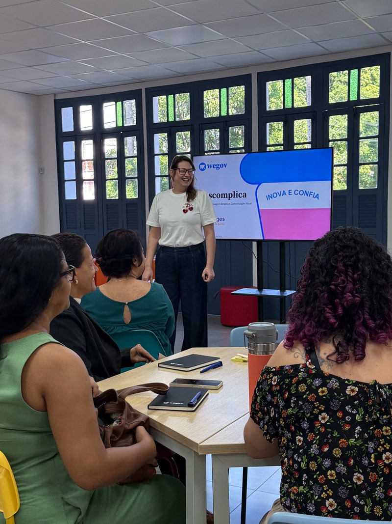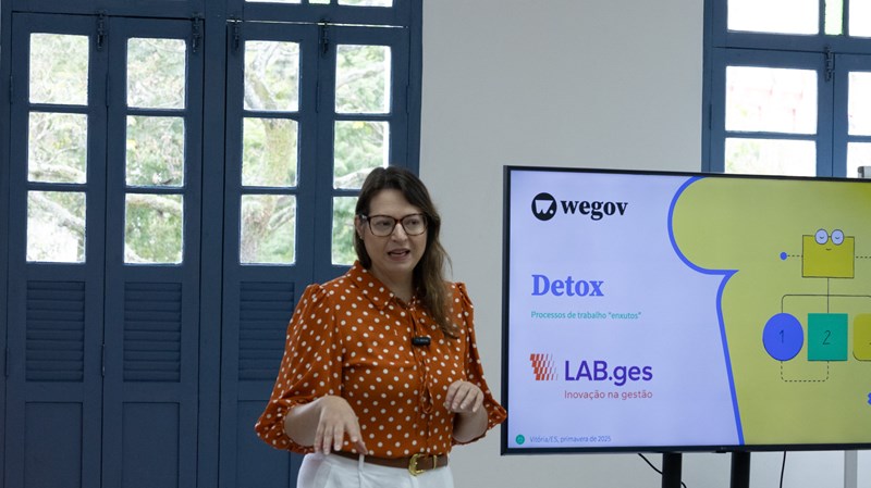 Em parceria com a Wegov, o LAB.ges capacitou duas turmas em temas relacionados à inovação. Na oficina "Descomplica", enfrentamos o desafio da falta de clareza na comunicação capacitando os servidores a utilizarem a Linguagem Simples, um conjunto de ferramentas práticas para criar e editar documentos mais claros. Já na "Detox", apresentamos as metodologias de BPM e Design Thinking para desburocratizar o serviço público, analisando processos institucionais a partir das necessidades reais das pessoas.